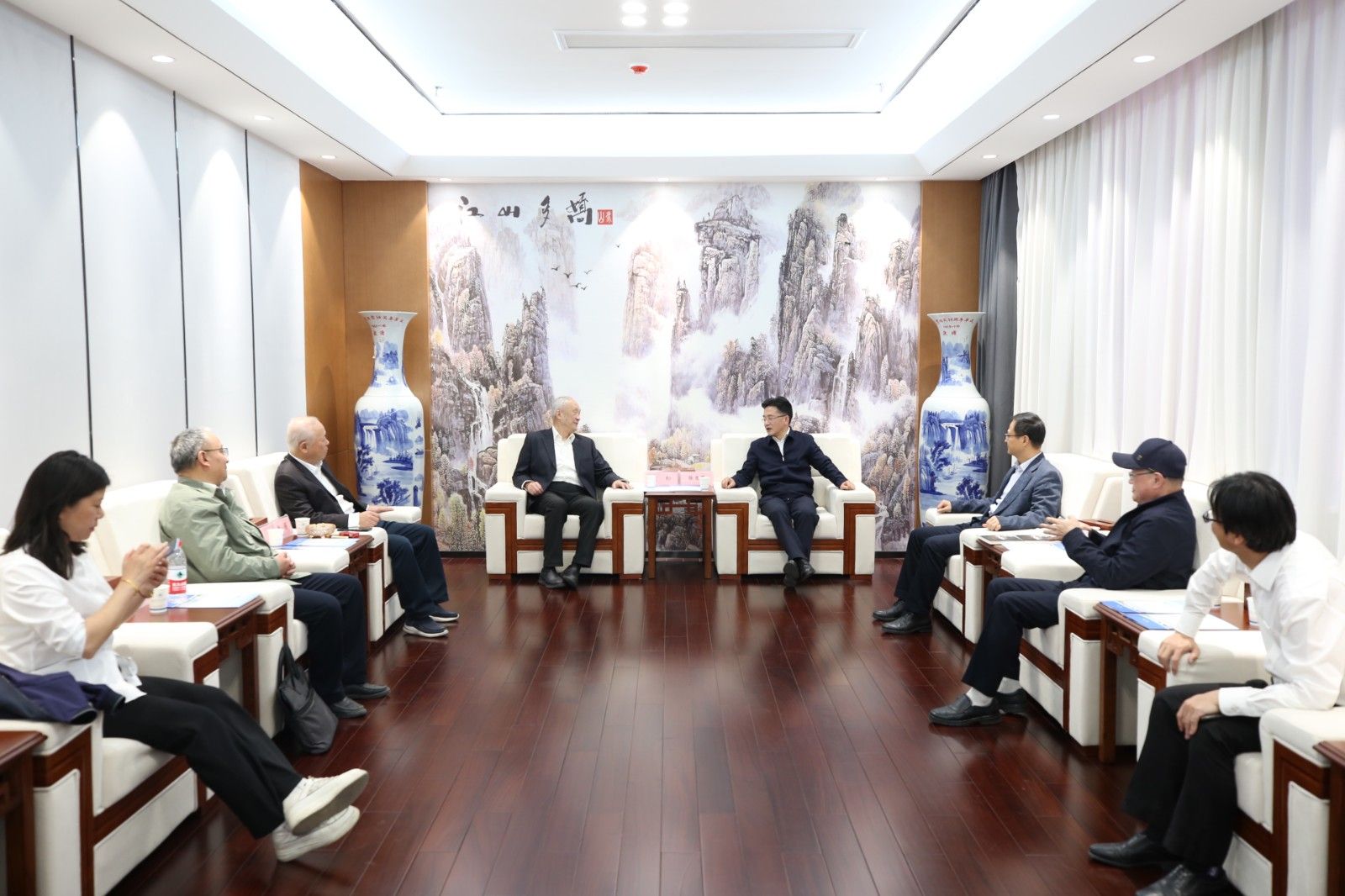 黄松、孟颀一行参观了新校区、校史馆、东风HUAT车队创新基地和科创展示中心,并在产教大楼与学校领导开展了深入的交流。